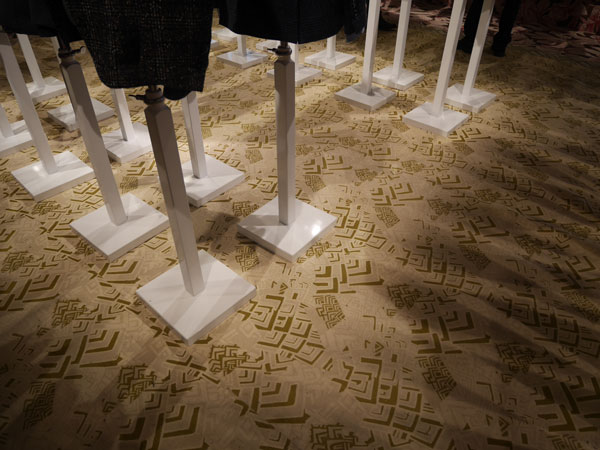 床の生地も昔のアーカイブを引っ張りだしてわざわざ作ったそう。歴史があるブランドはすごいですね・・。