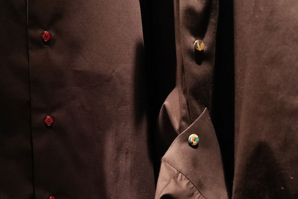 ちょっとモードっぽい雰囲気のシャツが良かったです。ボタンも凝っていて、ソリッドカラーのシャツにこのボタン、ありだな、と。