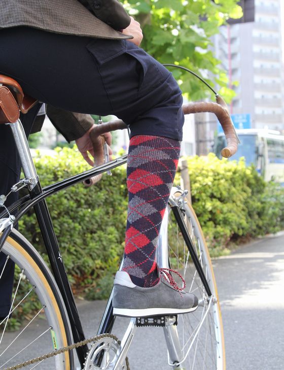 そんな中、冬の定番でもあるアーガイル柄を使用したロングソックス。自転車用なだけに、他のロングソックスとは少し違っています。