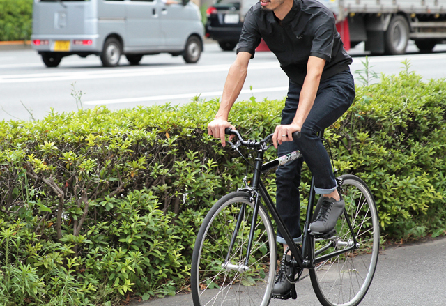 表面がフラットでシンプルなデザインな分、ロード用シューズにしては珍しくスタイリングでも振り幅のあるシューズ。デニムパンツに合わせるなんて荒業がしたい人にもおすすめです。