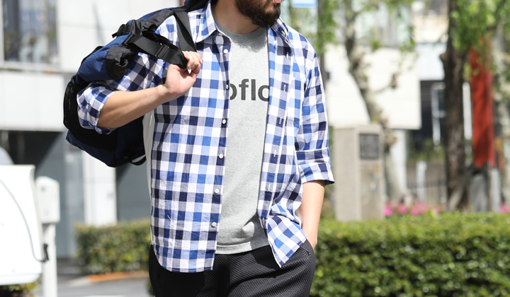 カジュアルにTシャツの上に羽織れば、完全オフスタイルに早変わり。涼し気な素材感と清涼感のあるブルーチェックが爽やかな印象を与えてくれます。