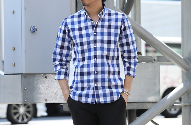 カジュアルライクなビッグチェック柄が目を引くビッグチェックBDシャツ。タイドアップすればドレスシャツとしての顔も覗かせます。普段のジャケパンスタイルに、ちょっとお洒落のアクセントを利かせたい時に。