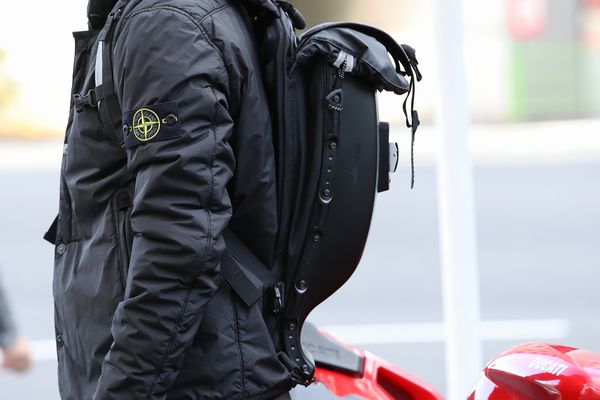 その雄々しさがルードというポジティブな印象に転じる場合もありますが、バイカーって野暮ったい印象を抱かれがち。しかしこのバックパックを背負えばスタイルにフューチャリスティックなニュアンスが加わるため、洗練された雰囲気に一変することが可能です。例えばこちら。