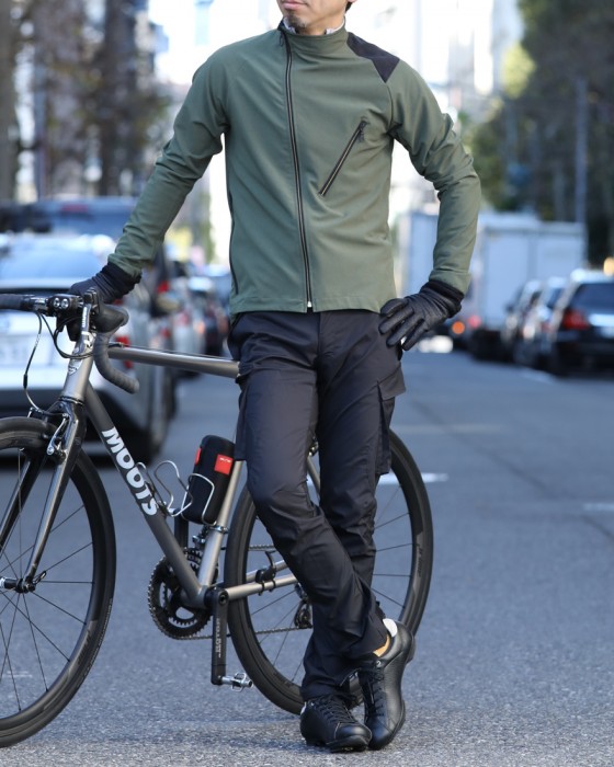 ラストはサイクルコーデ。TOKYO WHEELSの人気作Ventura(ベンチュラ)と合わせることで、これまたスタイリッシュ。ポイントとなるのはタイトなサイジング。細身に努めないとモード感が無くなってしまう可能性も。