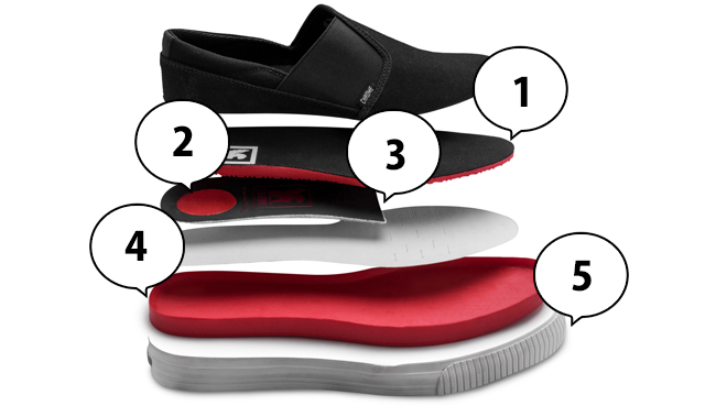 5.ソールとアッパー部分を加熱加圧によって一体化させたバルカナイズ製法。