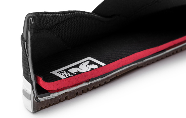 しかし、CHROMEのFOOTWEARはただソールが硬いだけじゃない。何層にも重なったソールが、しっかりとライドをアシストしてくれます。