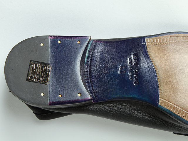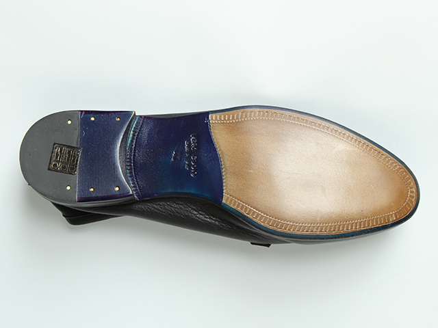 LOASCのベルジャンローファーはトゥ部分にだけ柔らかな芯材を入れ、カカトは芯材を省くことで圧迫感のない快適な履き心地を実現しています。そして製法はマッケイ製法となっており、ソール交換をしながら長くお付き合いできるのも大きな魅力の一つ。さらにソール裏にはヒドゥンチャネルとピッチの装飾、飾り釘、そして半カラス仕上げといった豪華な装飾をプラス。