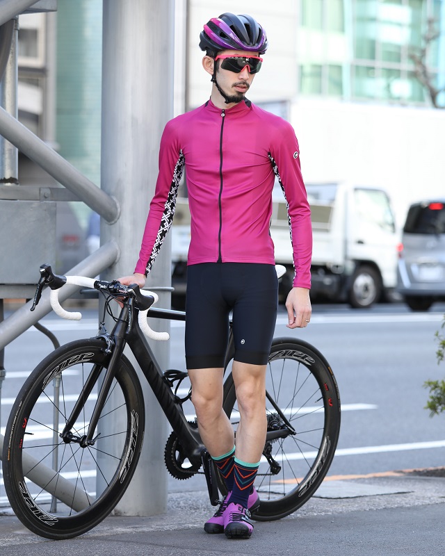 そして、この絶妙なカラーリングの長袖ジャージ。「ん?この春めいてきたタイミングで長袖の紹介か?このすっとこどっこいが!」と思われるかもですが、否。これは夏用ジャージの素材で仕上がった長袖ジャージ。つまり、「あ つ く な い」んですね(詳しくはこちらのBlogも!)