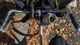本体がフック状になってるので、ハンドルバーに引っ掛けます。
