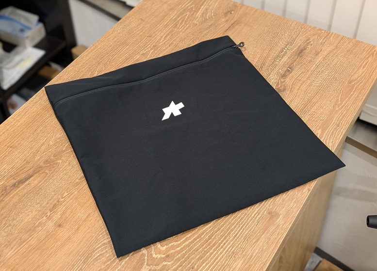 ウェアを入れるためだけに、ASSOSのスペシャルクオリティな防水素材を贅沢に使用したバッグですよ。ASSOSって、本当に(良い意味で)クレイジーだなと思いました。(笑)