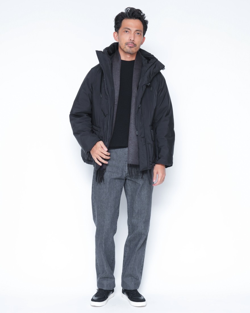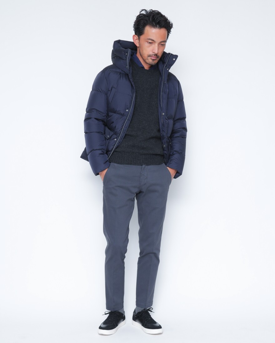 モデルサイズ:身長174cm/体重62.5kg/肩幅42cm/胸囲87cm/ウエスト77cm/ヒップ90.5cm/太もも53cm