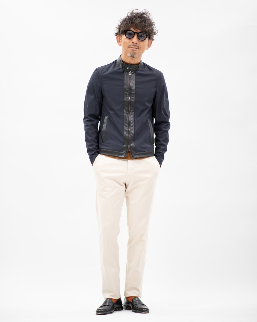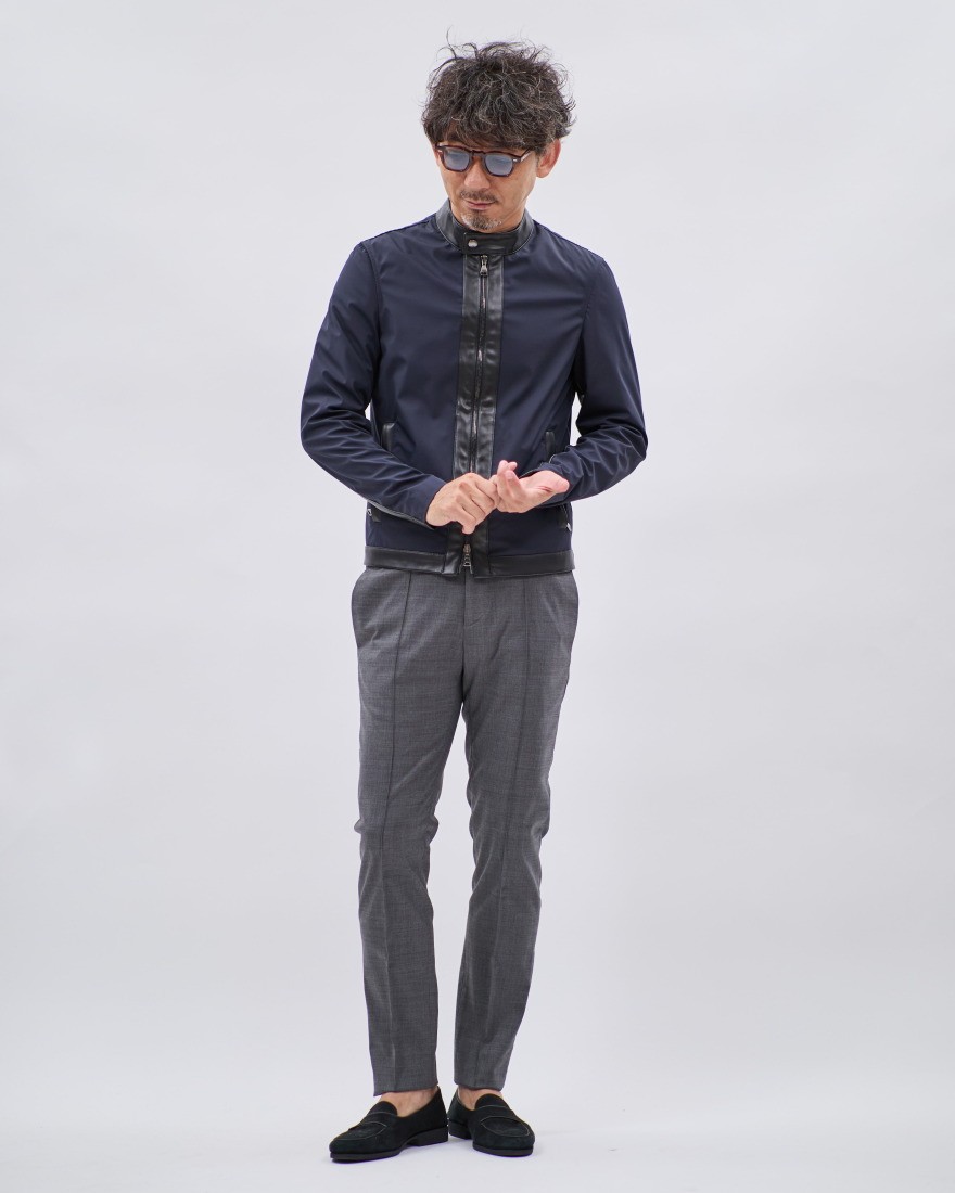 また、素材使いのみならず、人間の体躯を熟知したタイトすぎないスリムフィッティングも「エンメティ」の得意とするところです。