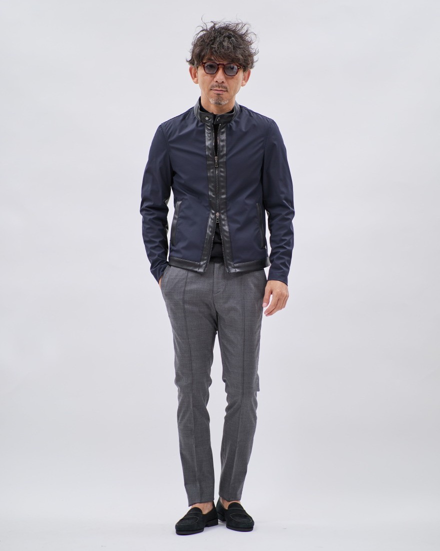 カラーは本体を深みのあるネイビー、切り替え部分をブラックという配色デザインも美しい一着です。