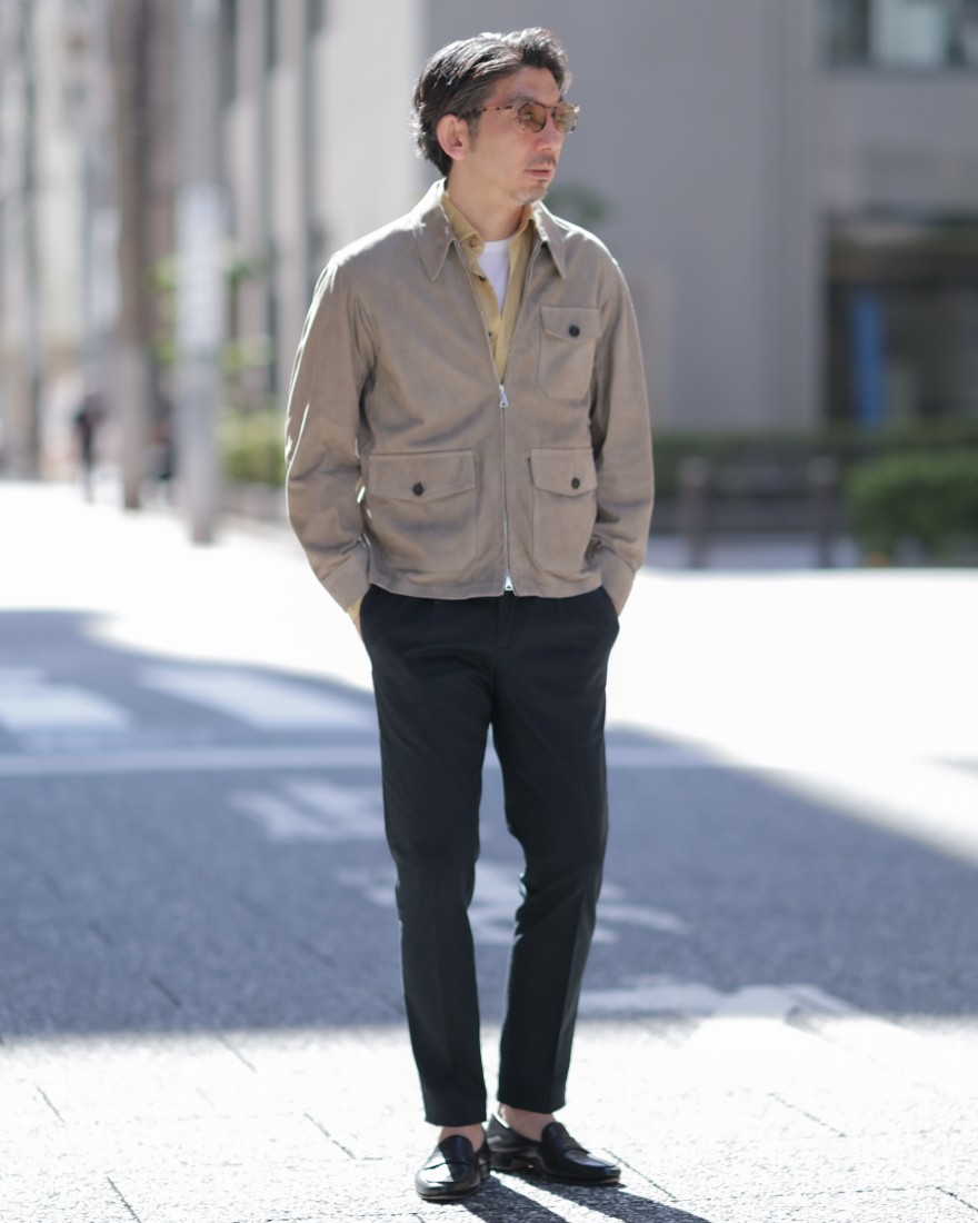 レザーを知り尽くしたEMMETIならではの、きめ細やかでしなやかなラムスエードを用いたレザージャケット。