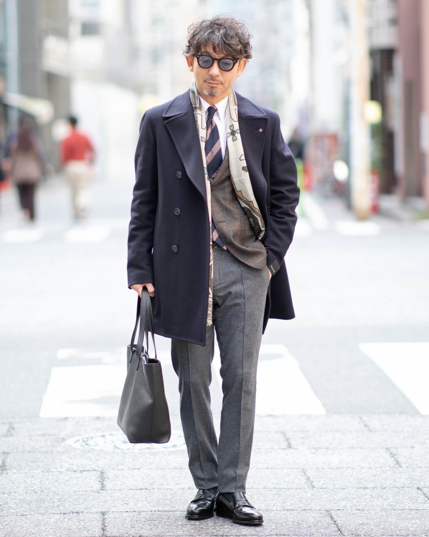 素材には、上質なウール100%を使用。滑らかな光沢とウール本来の暖かみのある美しい風合いが特徴です。生地は、ブラックを基調に濃淡のあるブラウンが存在感を放つグレンチェックの織地を採用。クラシックな品の良さの中にも洗練された表情を併せ持つ一着です。