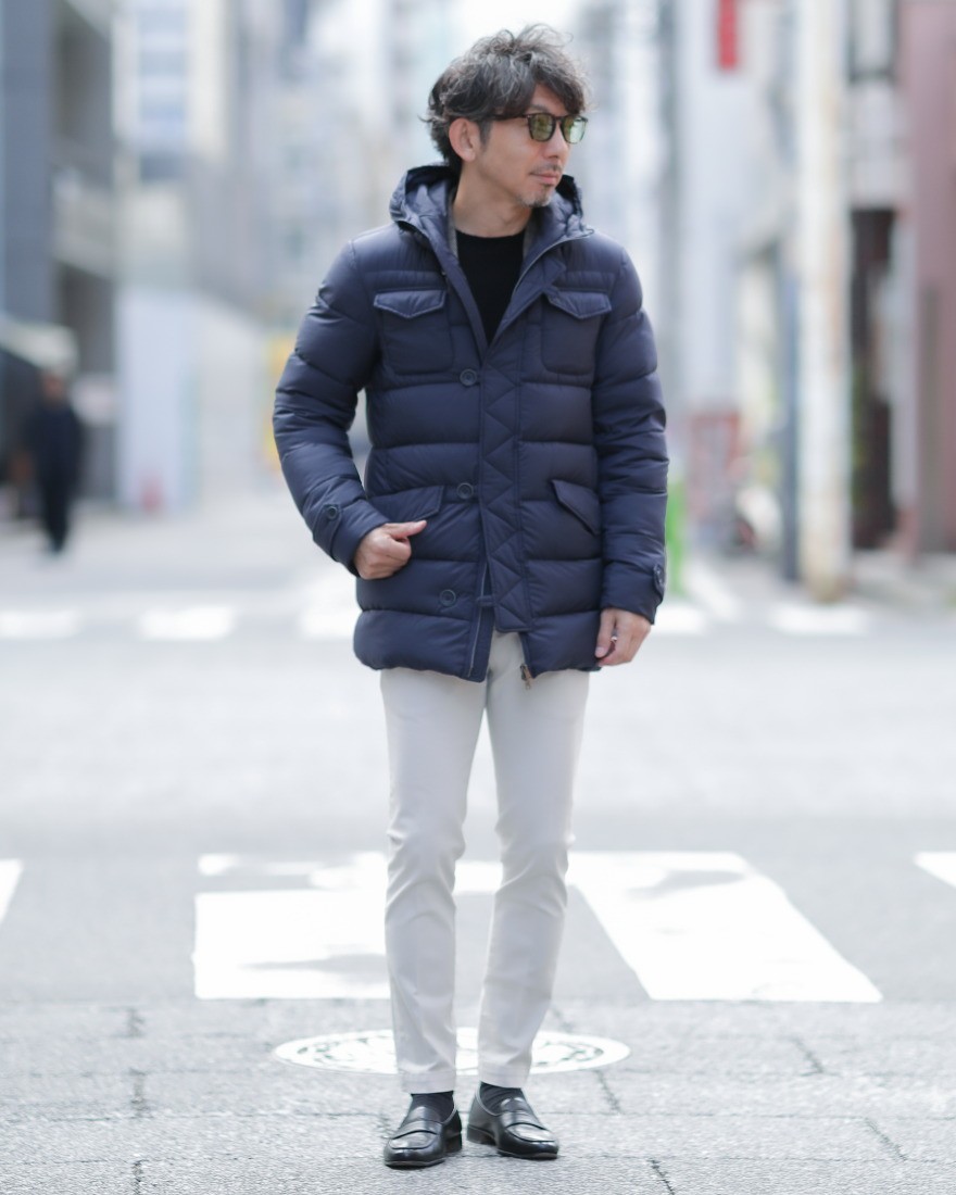 圧倒的な支持を誇る定番コレクション「Herno Legend」のミリタリーフードダウンジャケット。