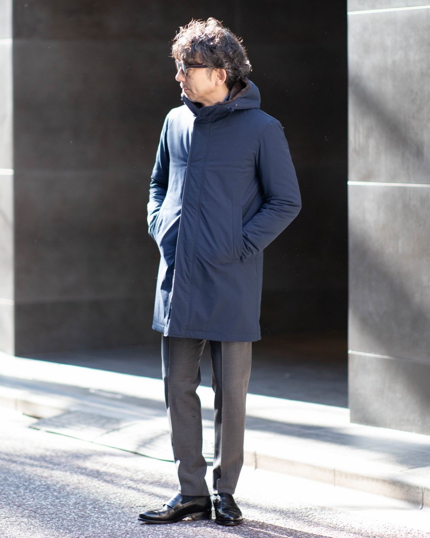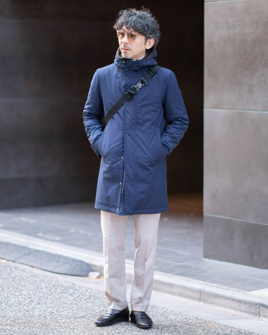 撥水性を持つ化学繊維でありながらも、コットンライクな風合いが美しいタスラン織りの生地を表地に使用した、Hernoのフード付き中綿ロングコート。柔らかくナチュラルな表情を持ちながら、ハリを持つマットでややドライな質感。さらにストレッチ性も備えた快適な着心地も魅力です。