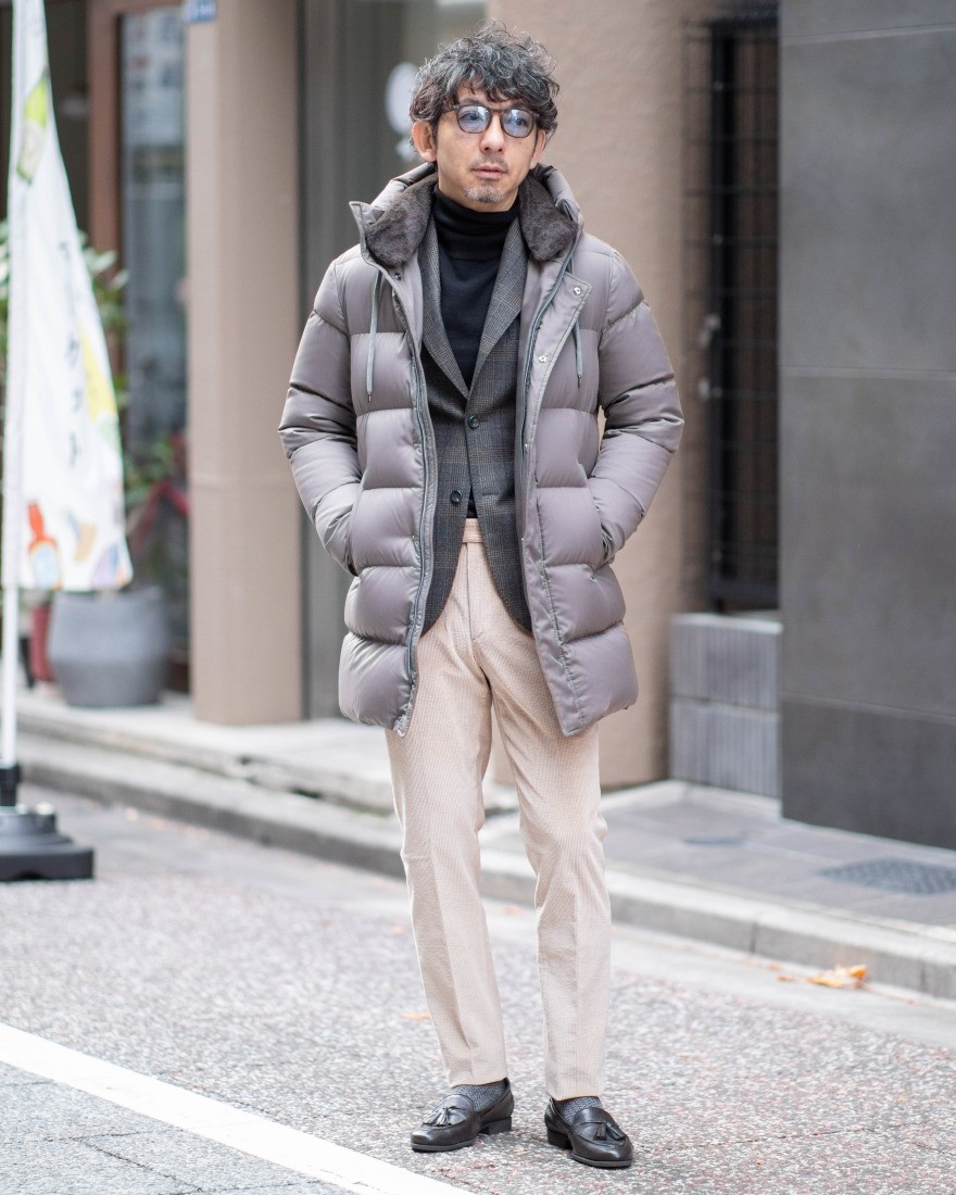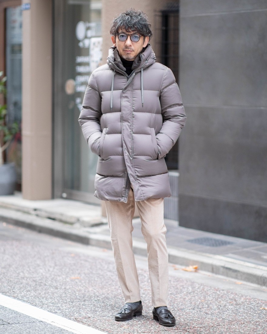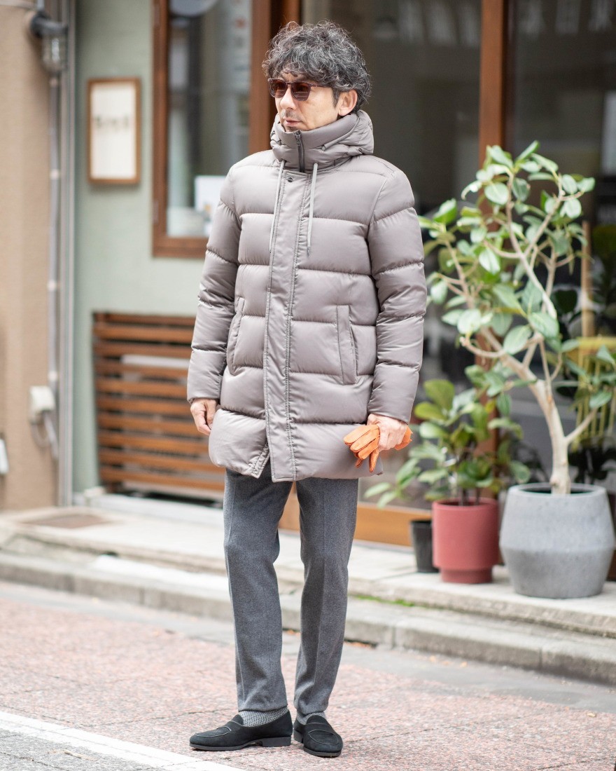 ビジネスからカジュアルなシーンまで、幅広いスタイルに自然に溶け込む、洗練されたダウンコートです。