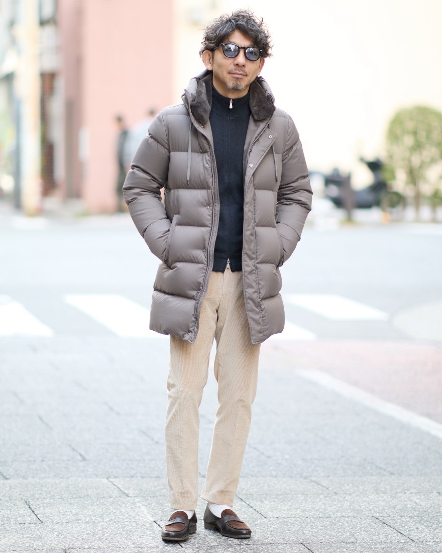 モデルサイズ:身長174cm/体重65kg/頭囲58cm/肩幅42cm/胸囲90cm/ウエスト78cm/ヒップ91cm/太もも53cm /手囲い23cm 着用サイズ:46/チャコール