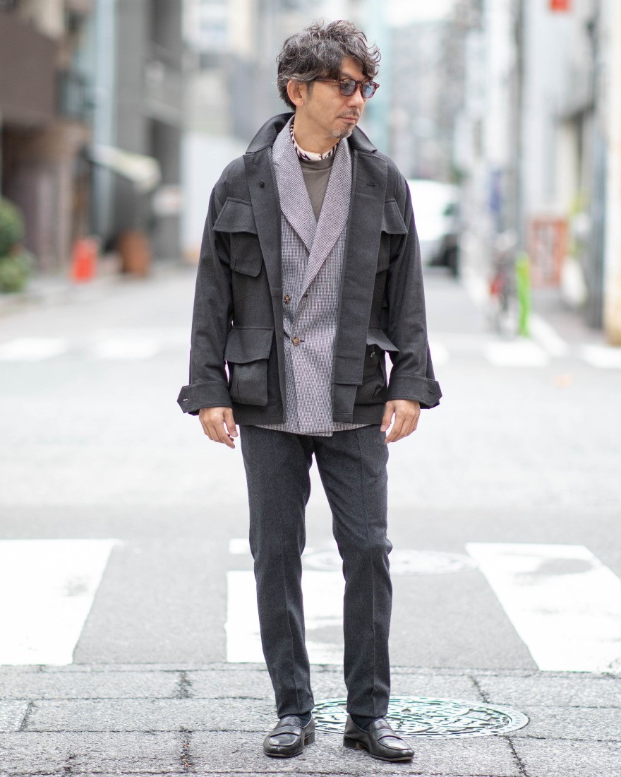 本格的な軍モノとは異なる、日本人にフィットするシルエットも魅力のジャケットは、アウターとしてはもちろん、シャツ感覚で冬アウターのインナーとしても着こなせる便利なアイテムです。