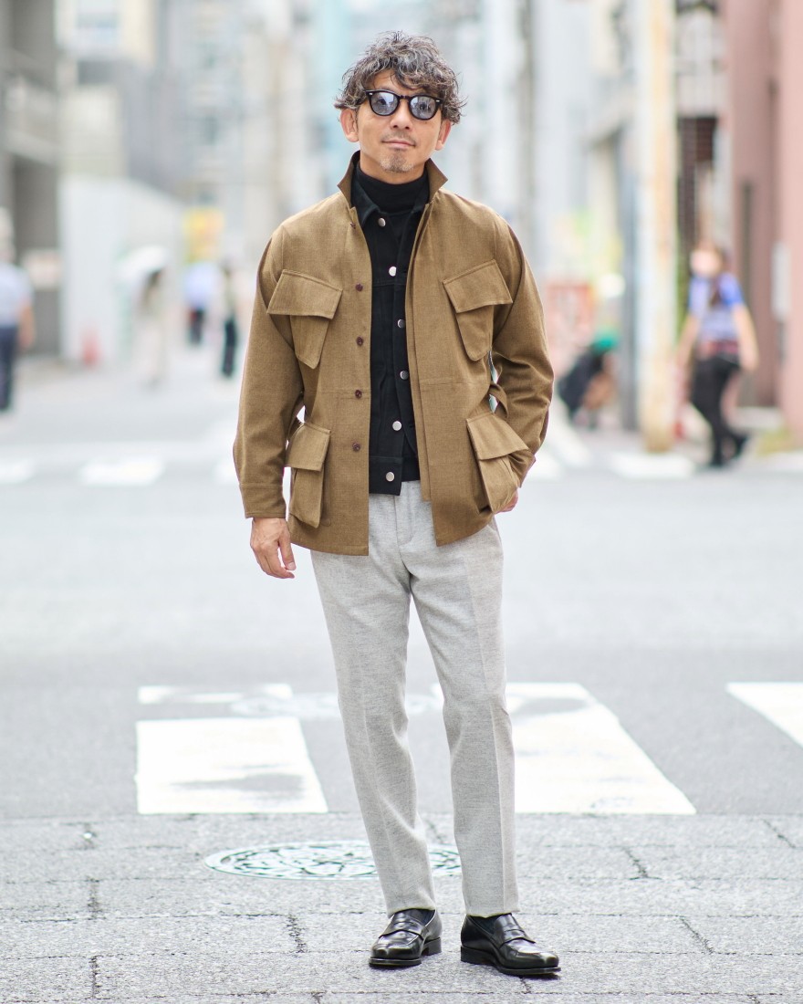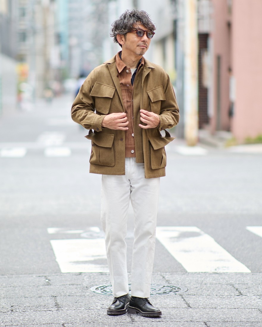 カラーはやや明るさを感じるブラウンカーキの美しい色合い。本格的な軍モノとは異なる、日本人にフィットするシルエットも魅力のジャケットです。