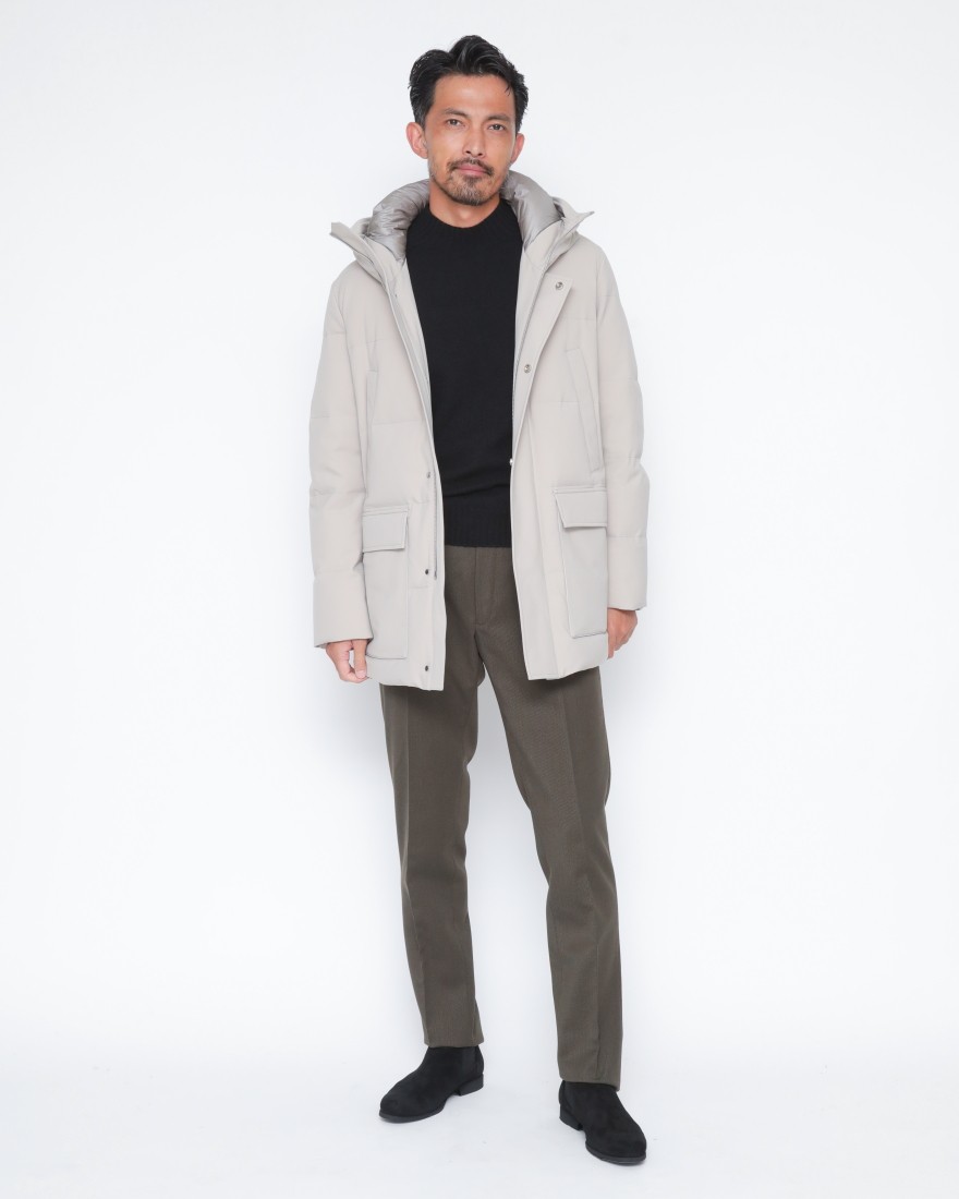 その高い機能性と快適性は、都市生活からアクティブなシーンまで幅広く活躍。ジャケットの裾が隠れる着丈のため、ビジネスからカジュアルまで着こなしの幅が広がる一着です。