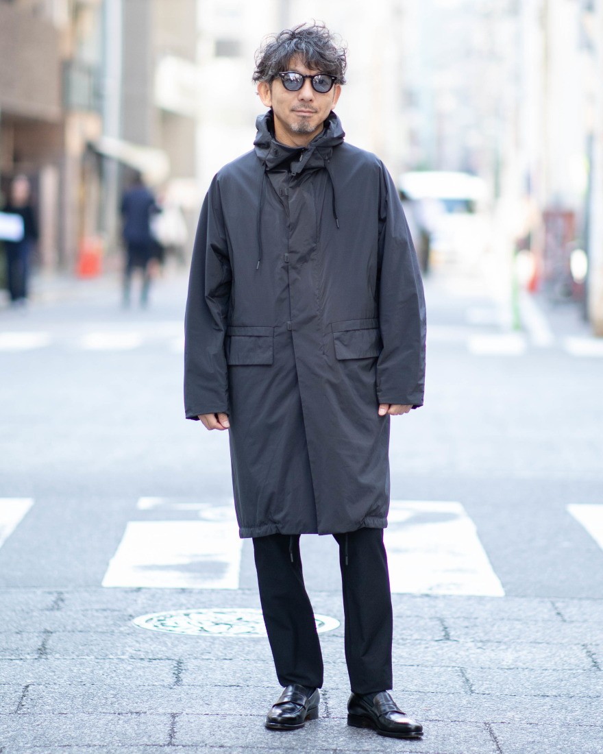 ジャケットなどのかさばるアウターの上からも羽織ることのできるビッグシルエットになっています。