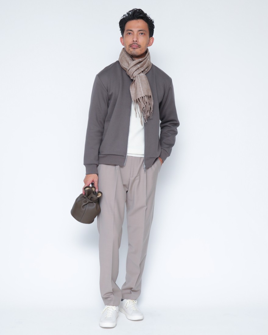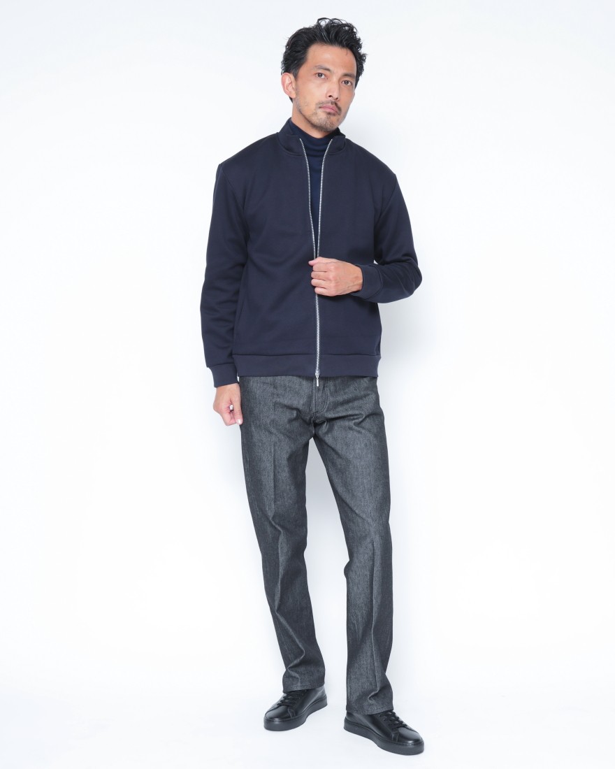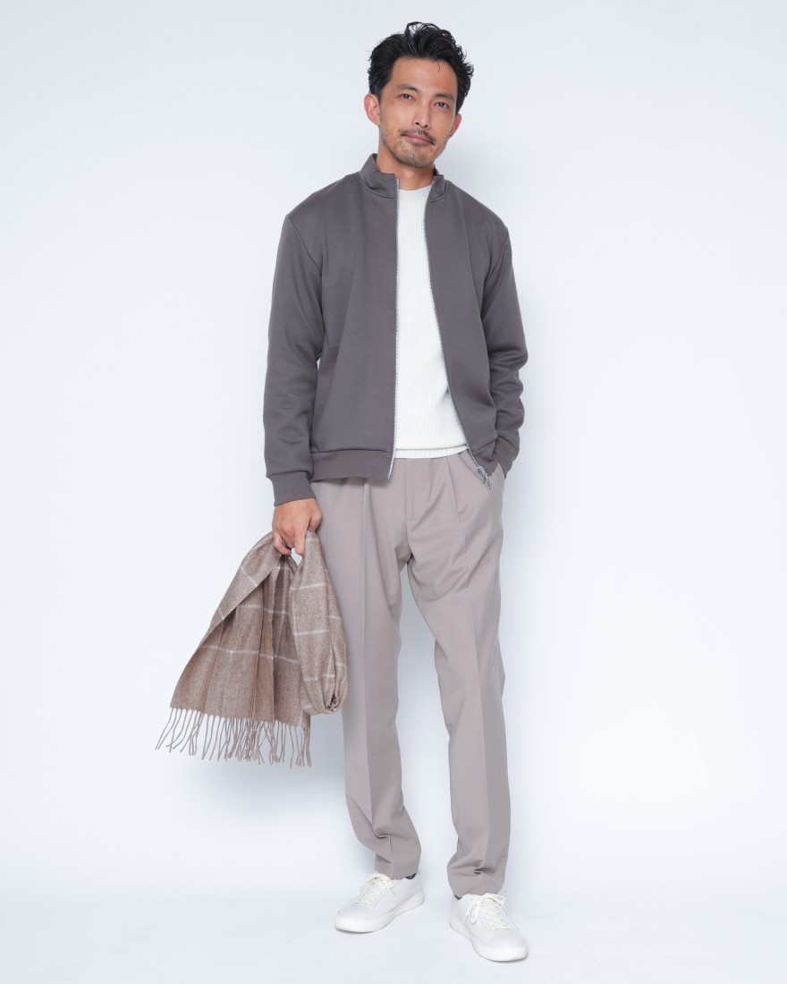 上品さを求める大人にふさわしい、three dotsのスウェットジップアップブルゾン。