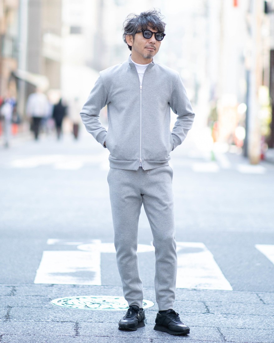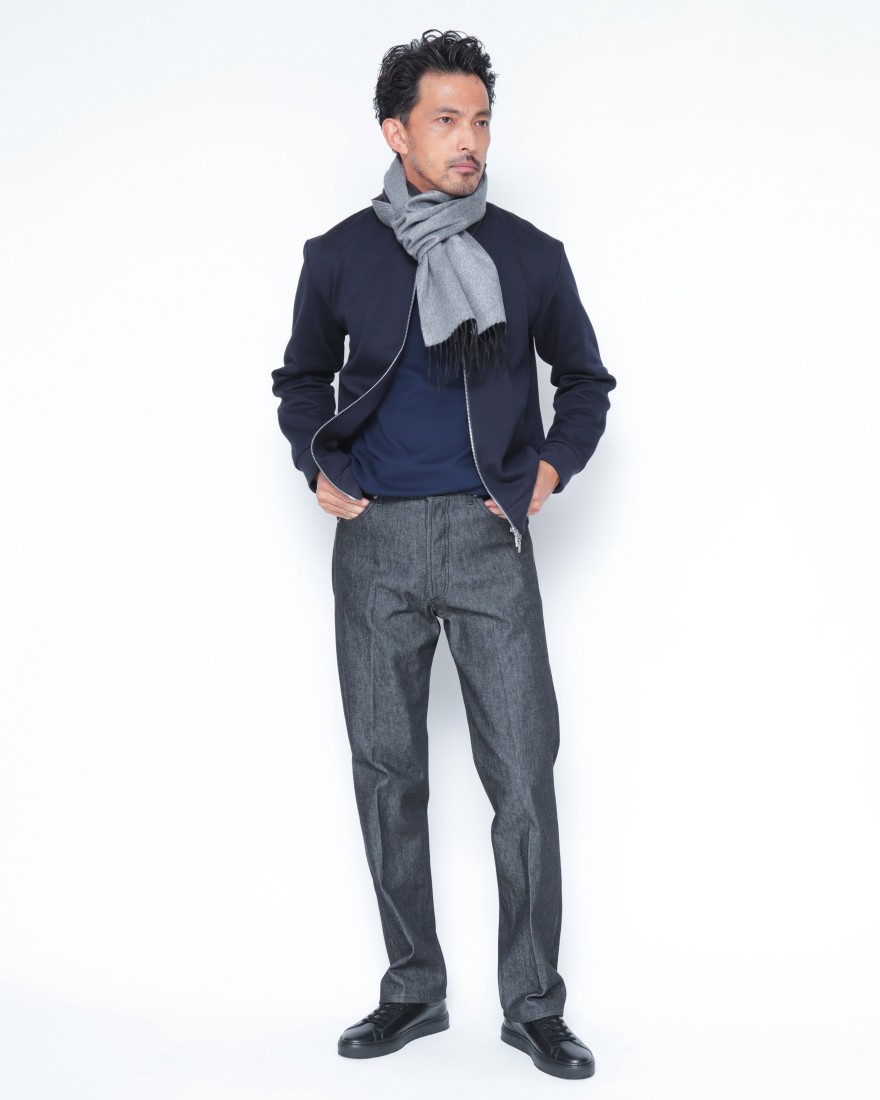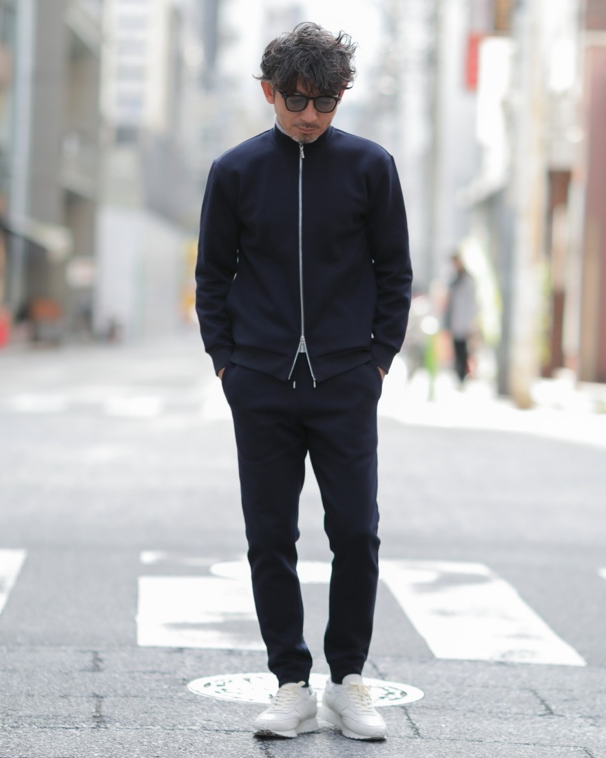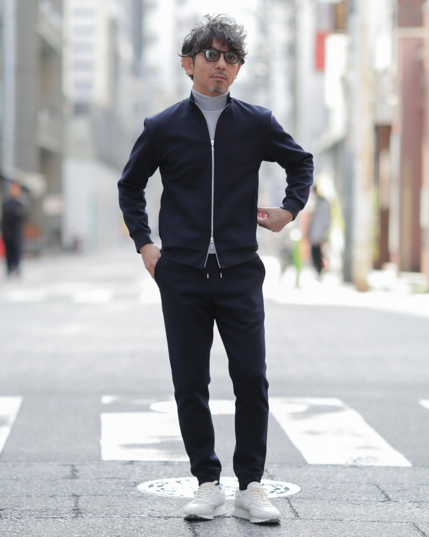 上品さを求める大人にふさわしい、three dotsのスウェットジップアップブルゾン。