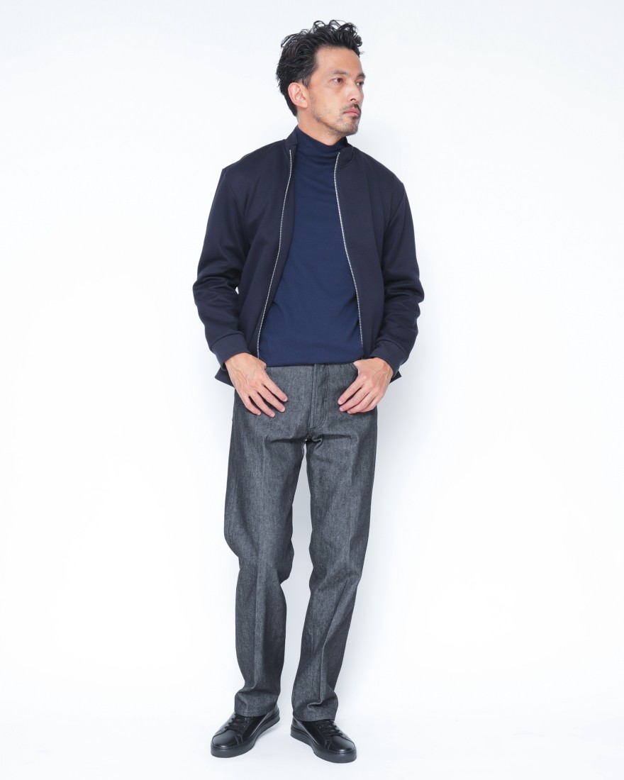 モデルサイズ:身長174cm/体重65kg/頭囲58cm/肩幅42cm/胸囲90cm/ウエスト78cm/ヒップ91cm/太もも53cm /手囲い23cm 着用サイズ:S/ダークネイビー