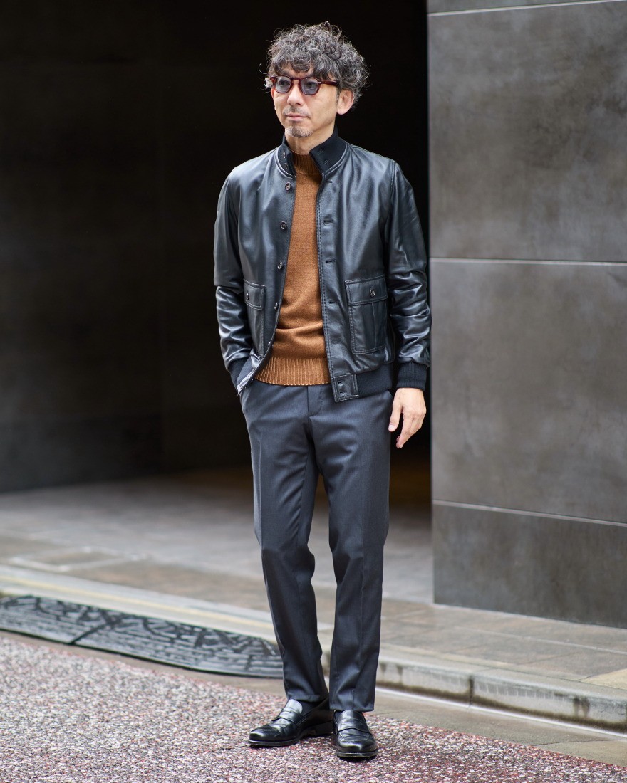 そんな定番モデルにナッパレザーを採用したモデルが登場。柔らかさと耐久性が特徴のナッパレザーは非常にしなやかで、より洗練された印象に。レザー特有のクールな印象はキープしつつも、重すぎず軽快な印象も受ける何とも不思議な魅力を持った一着です。
