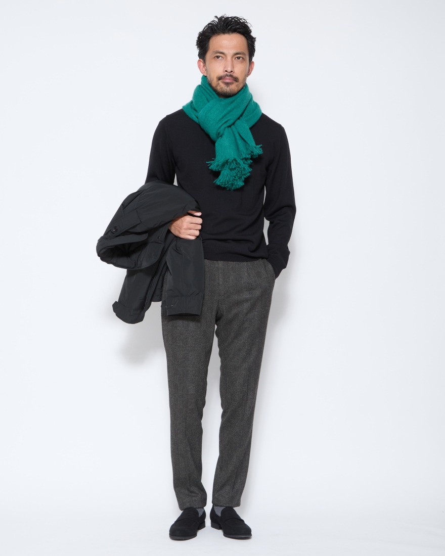 ZANONEのニットは、日本人の体型にフィットする美しいシルエットが特徴です。程よいスリムなサイズ感で、スーツやジャケットのインナーとして着用してももたつかず、すっきりとスマートな印象を与えます。