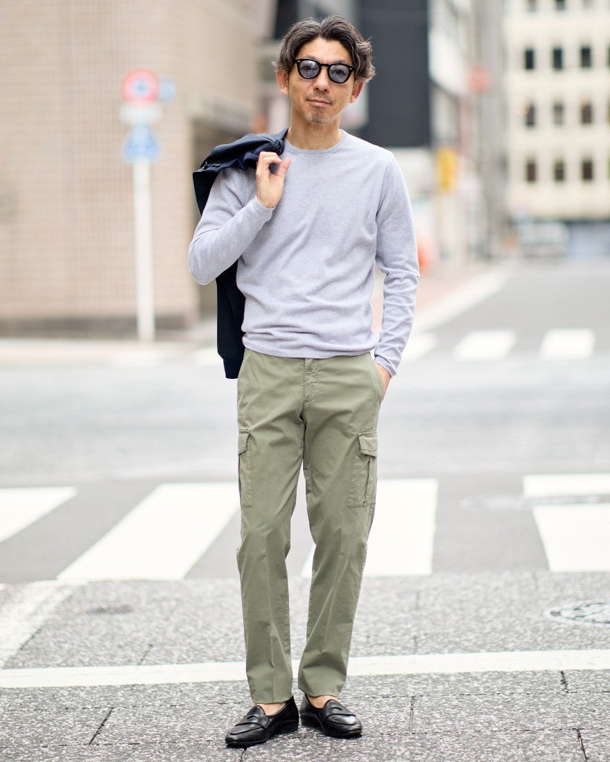 一枚でもサマになるアイテムですが、薄手のすっきりとしたシルエットはジャケットやブルゾンのインナーとしても最適です。