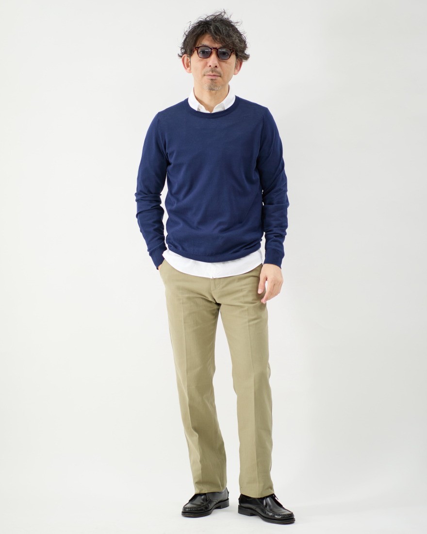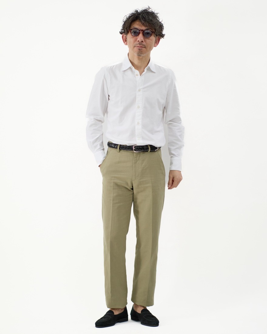 こちらのコットンシャンブレーシャツは、さらりとしたややドライな生地感と、織りによって生まれる奥行きのある風合いが魅力です。適度なハリと上品さを併せ持つ生地は、通気性もよく、ロングシーズン快適に着こなせます。