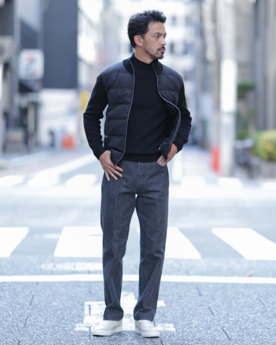 比較的細身のフィット感となりますので、ジャストフィットがお好みの方はいつも通りのサイズを、リラックスしたサイズ感がお好みの方はワンサイズアップをオススメします。