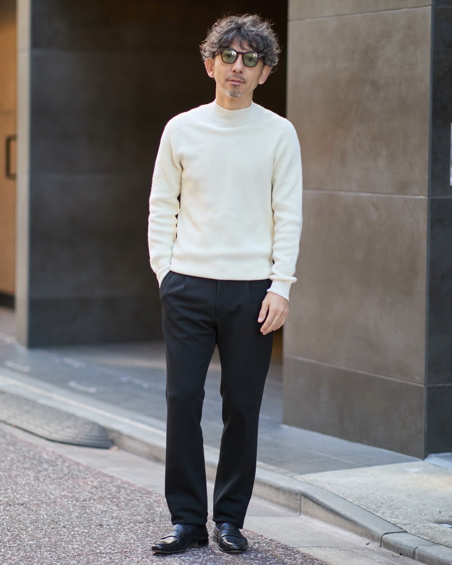 モックネックがエレガントな表情をみせる、極上ウールリブニット