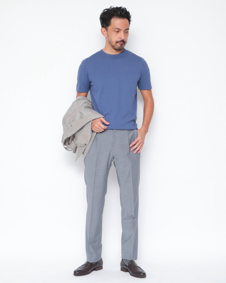 GRAN SASSOの定番として愛される、春夏に最適なクルーネックニットTシャツ。