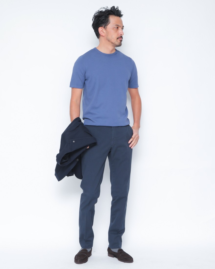 GRAN SASSOの定番として愛される、春夏に最適なクルーネックニットTシャツ。