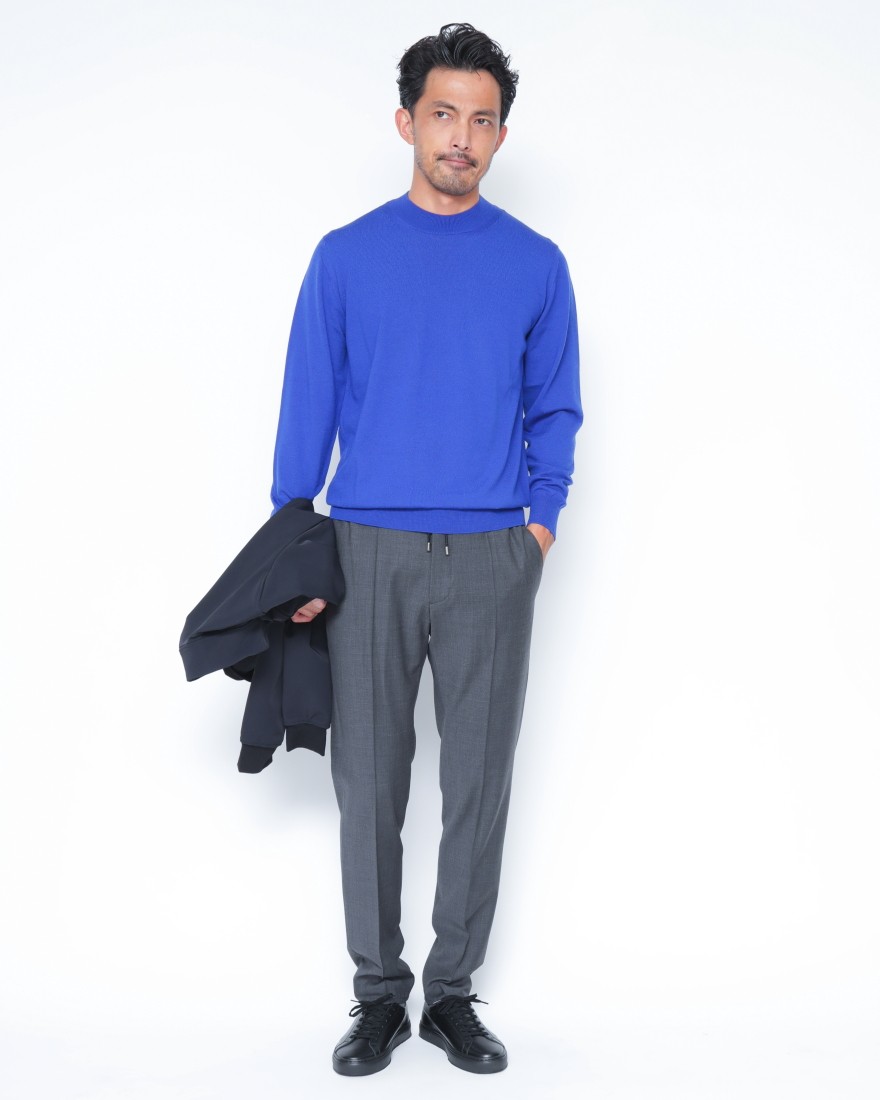 細番手の上質なメリノウールで仕立てた、DRUMOHRのハーフモックネックニット。ウールならではの上質な艶と弾力がありながら、その風合いは驚くほど柔らかく滑らかです。