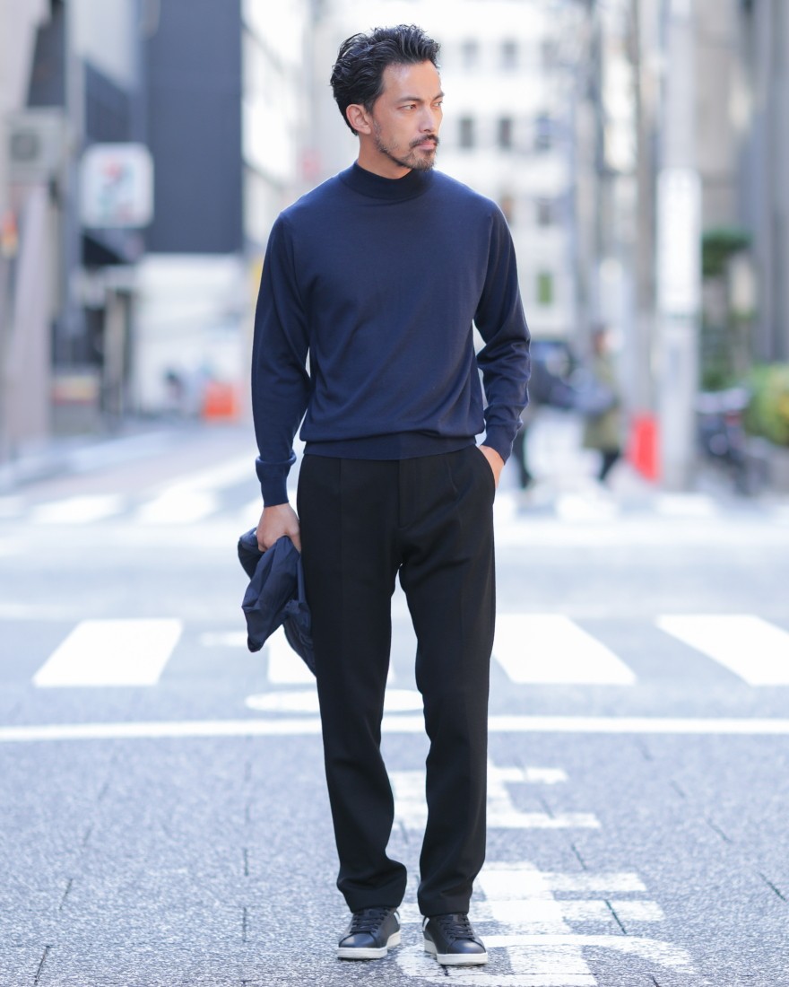 洗練されたフィット感で、ドレスからカジュアルまで着回せる最高品質のモックネックニット