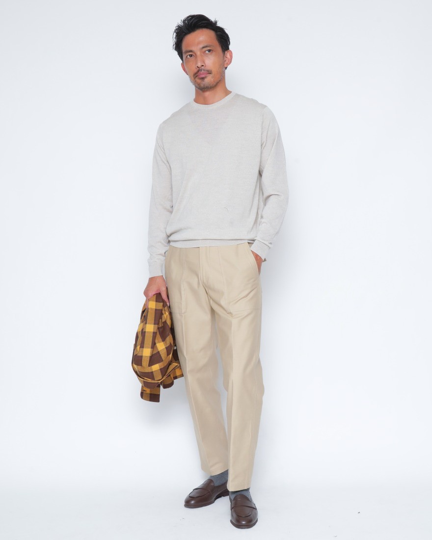 モデルサイズ:身長174cm/体重65kg/頭囲58cm/肩幅42cm/胸囲90cm/ウエスト78cm/ヒップ91cm/太もも53cm /手囲い23cm 着用サイズ:S/ライトブラウン