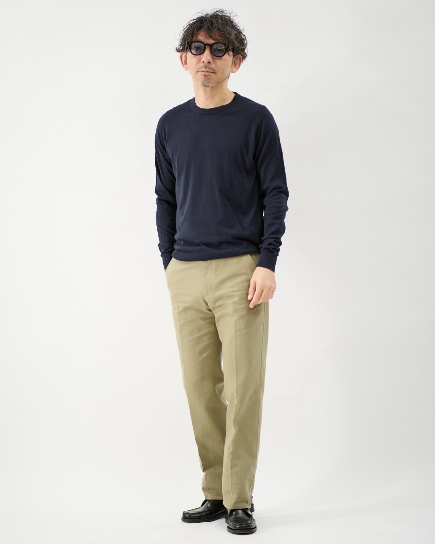 シンプルかつ普遍的な魅力を持つJOHN SMEDLEYのクルーネックニットは、あらゆるシーンに対応する大人の上質なスタイルには欠かせない定番的な一枚です。