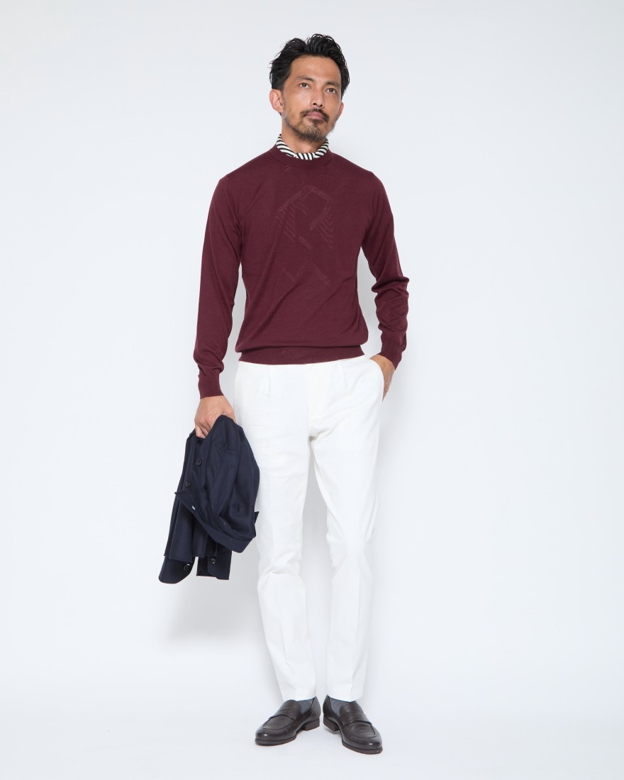 ニットブランド「FILIPPO DE LAURENTIIS」が、その高い技術と高品質な素材を惜しみなく注ぎ込んだクルーネックニット。