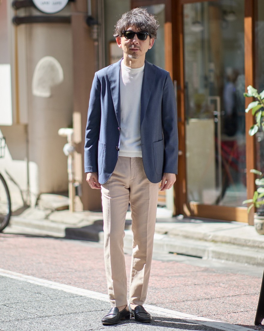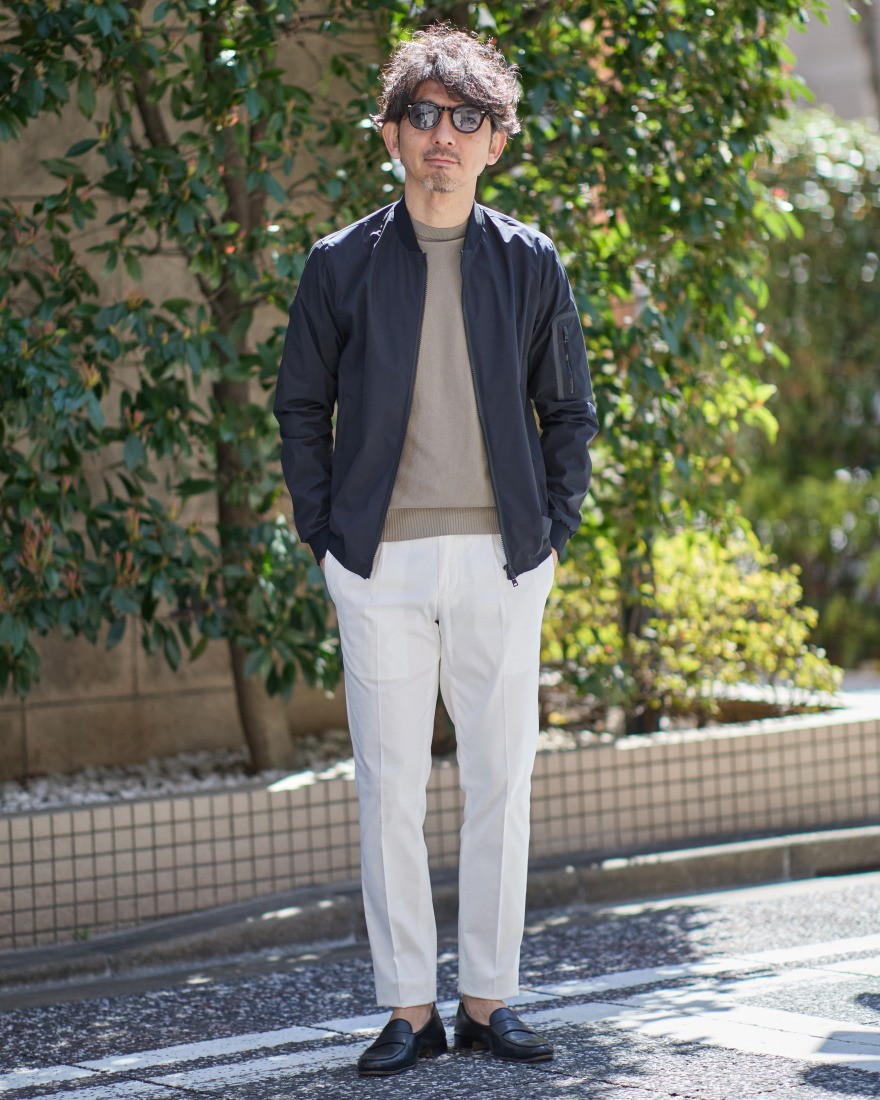 モデルサイズ:身長185cm/体重73kg/肩幅48㎝/胸囲95cm/ウエスト80cm/ヒップ96cm 着用サイズ:50