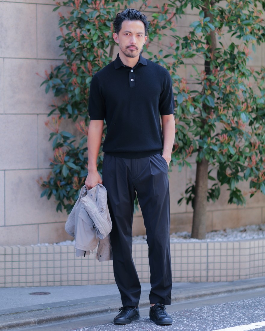 美しい襟元が大人を引き立てる。クレープコットンの清涼感を纏う、洗練ニットポロ
