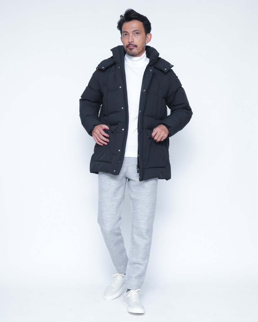 モデルサイズ:身長174cm/体重65kg/肩幅42cm/胸囲90cm/ウエスト78.5cm/ヒップ93cm/太もも57cm 着用サイズ:M/ブラック