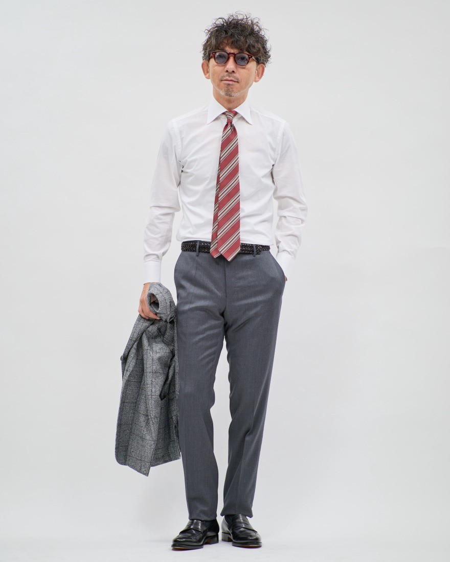 タイドアップでカチッと決めるのはもちろん、ネクタイなしでさらりと着こなすだけでもこなれたスタイルが完成します。