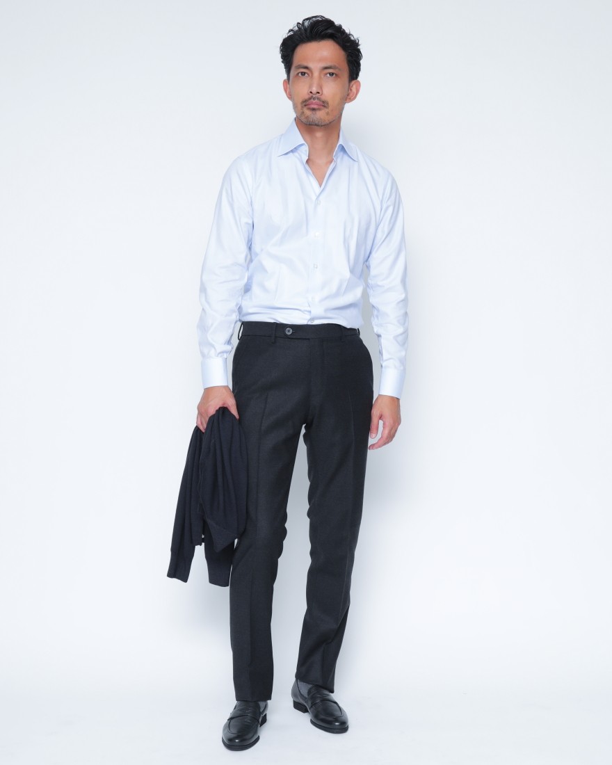 ジャケットと合わせれば端正なスタイルに、一枚で着れば洗練されたカジュアルスタイルにと、あらゆるシーンで活躍する、汎用性の高い逸品です。