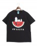 リラックスしたユニセックスなシルエットに、イタリアンカラーを連想させる大きなスイカと、そのうえでうたた寝をするスヌーピーの遊び心溢れるプリントが目を引く一枚。どこかクラシックなムードの漂う「ITALIA」のフォントも表情豊かな一着です。