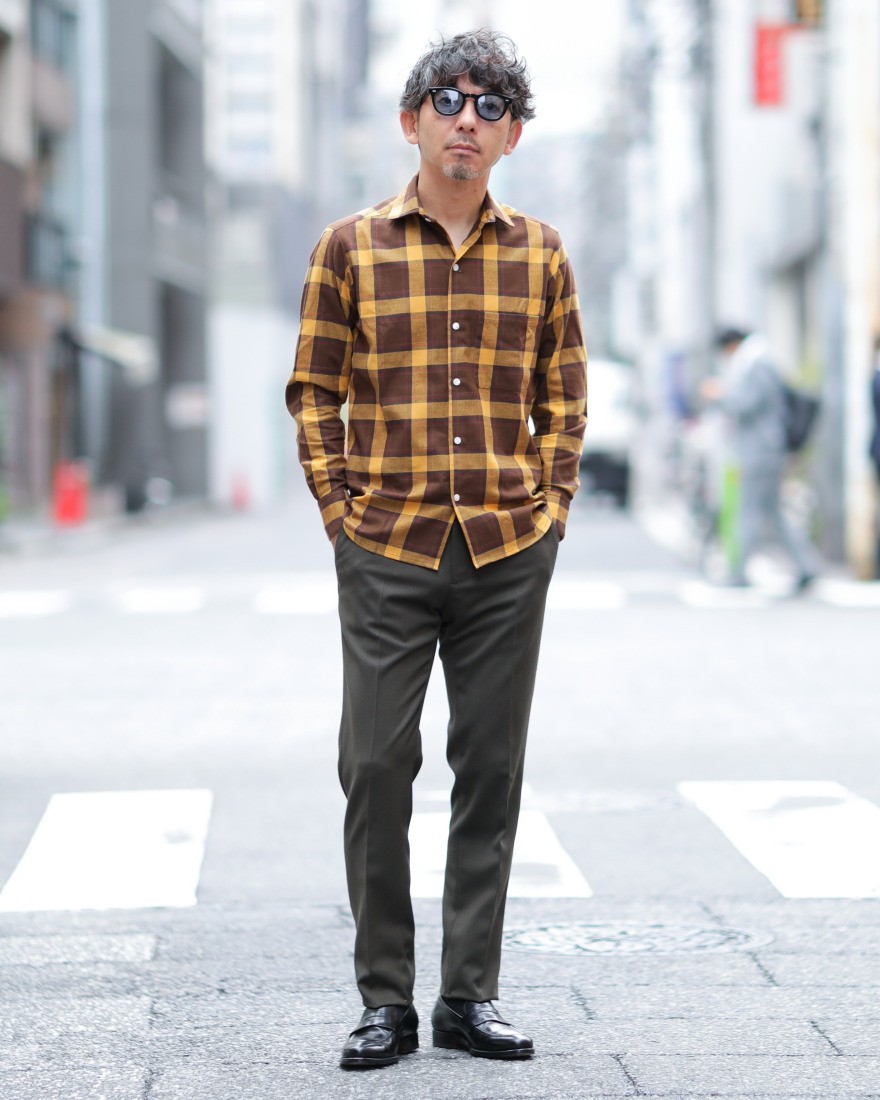 コットン100%の薄手フランネル生地で仕立てた、軽やかで心地よいチェックシャツ。フランネル特有の無骨さを排し、微起毛のしなやかなタッチが肌に馴染みます。